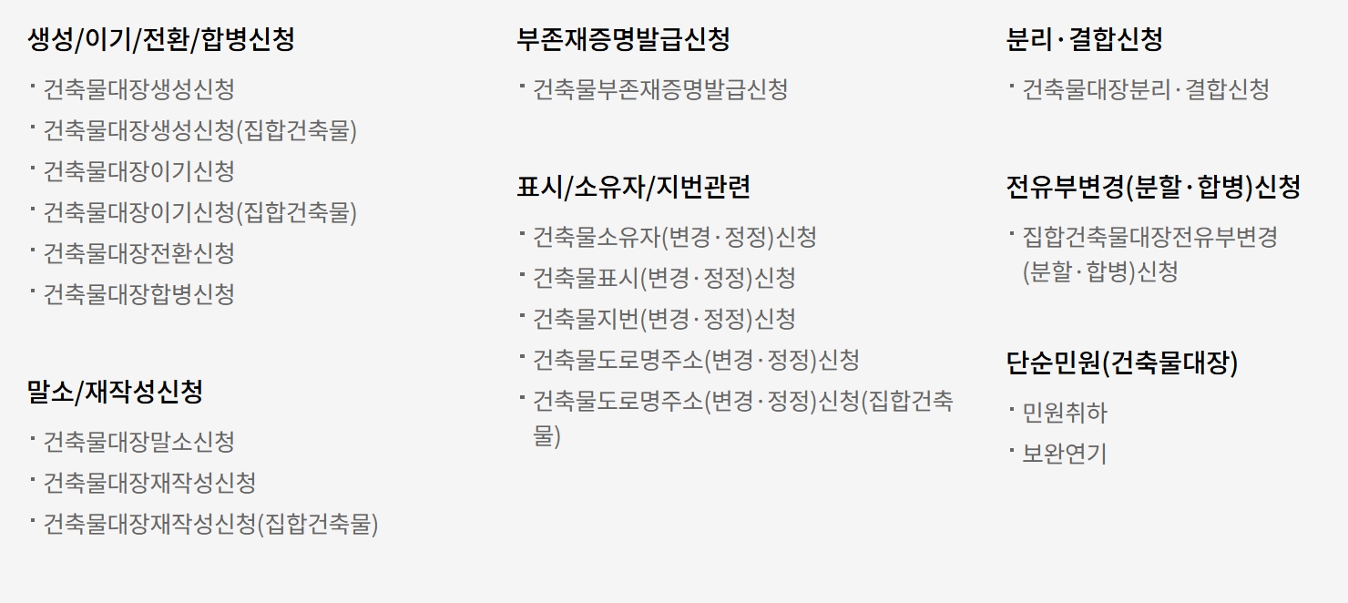 - 건축물대장 종류 및 용도 구분