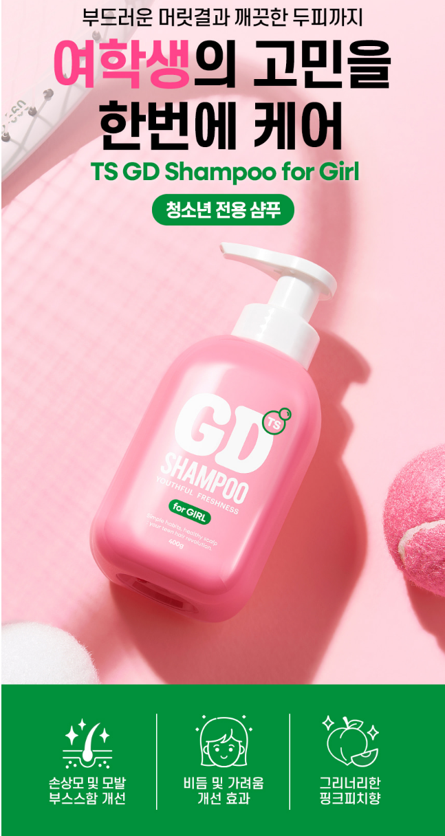 TS GD 여학생 샴푸는 비듬·가려움·유분 문제는 물론, 손상모와 냄새까지 케어해주는 올인원 솔루션입니다.