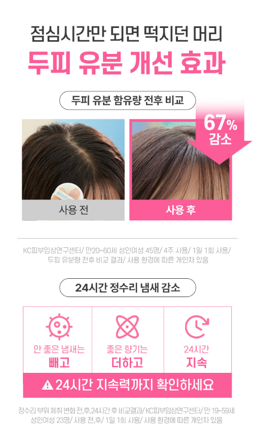 두피 유분 감소 67%