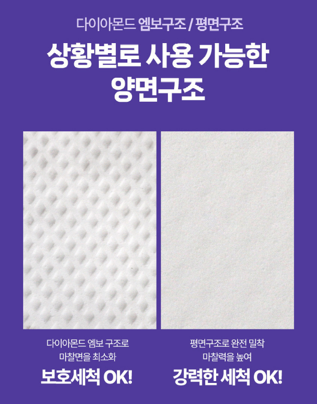 찌든 때는 엠보 쪽으로, 마무리 광택은 평면 쪽으로 닦으니 훨씬 효율적이에요.
