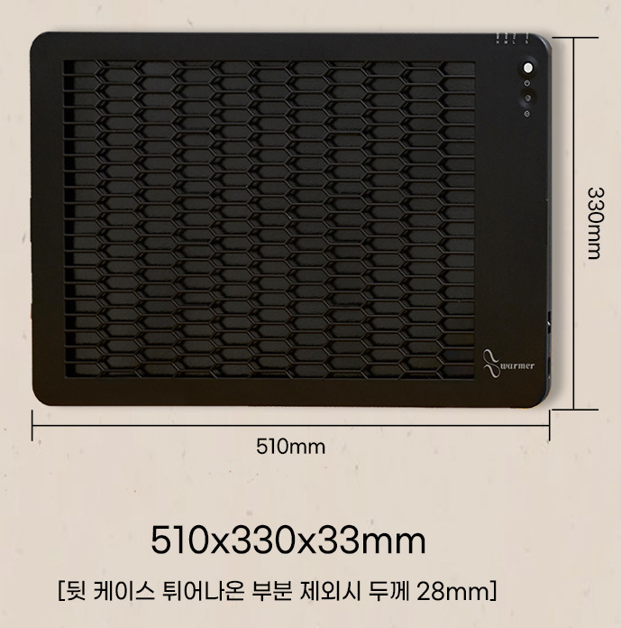 크기는 510×330×33mm로, 책상 밑·침대 옆·발밑용으로 딱 맞는 사이즈입니다.
