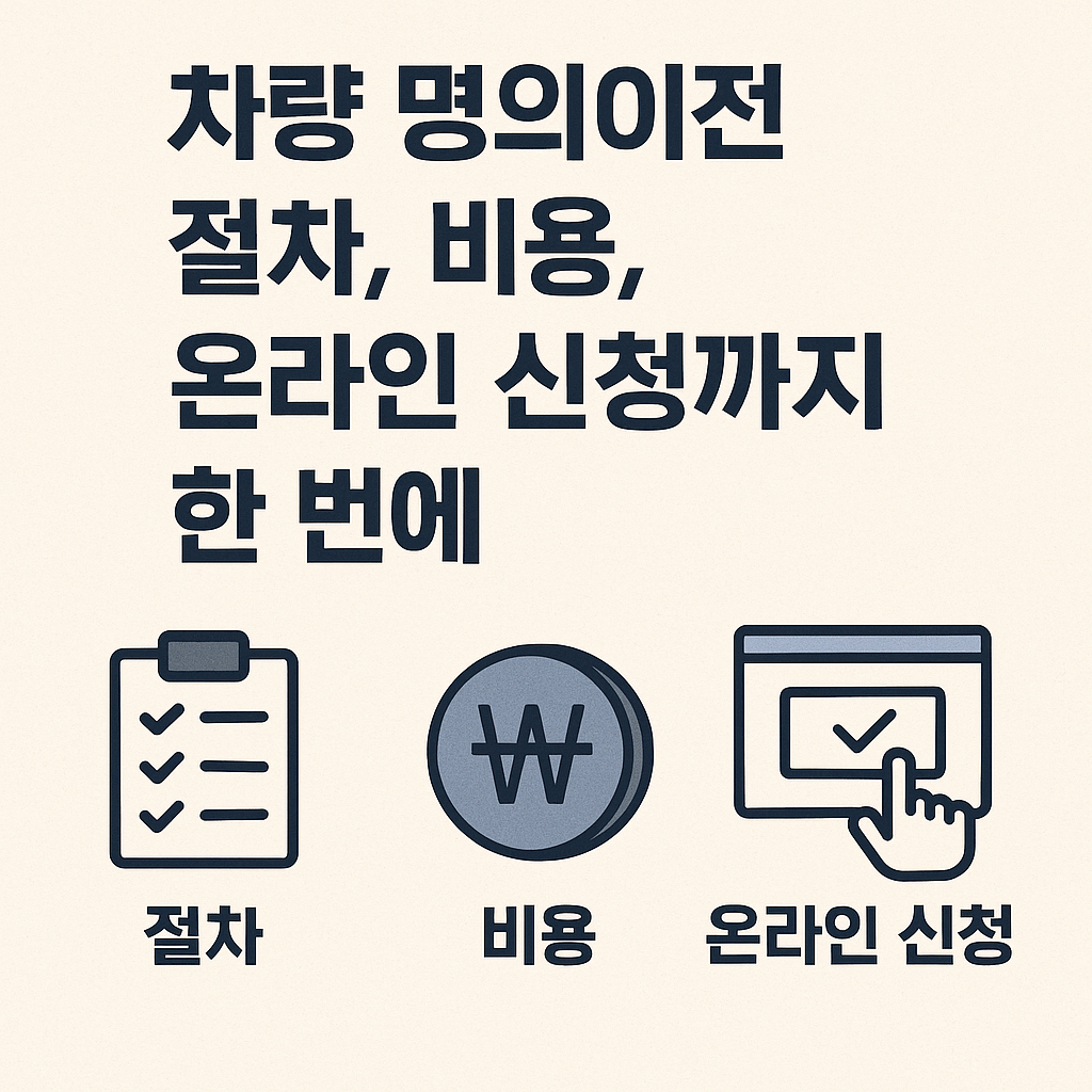 자동차의 소유권을 기존 소유자(판매자)에서 새로운 소유자(구매자)로 변경하는 절차입니다.
